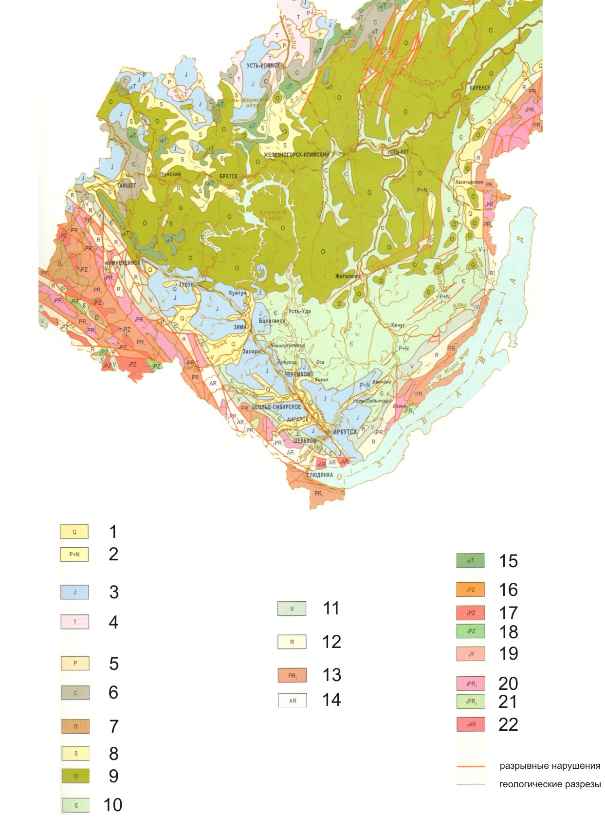 Как видим, строение земной коры в пределах области достаточно сложно и разнообразно. Здесь можно встретить породы и минералы почти всех известных геологических периодов и систем. Их многообразие и запасы выдвинули Иркутскую область на одно из первых мест в России.