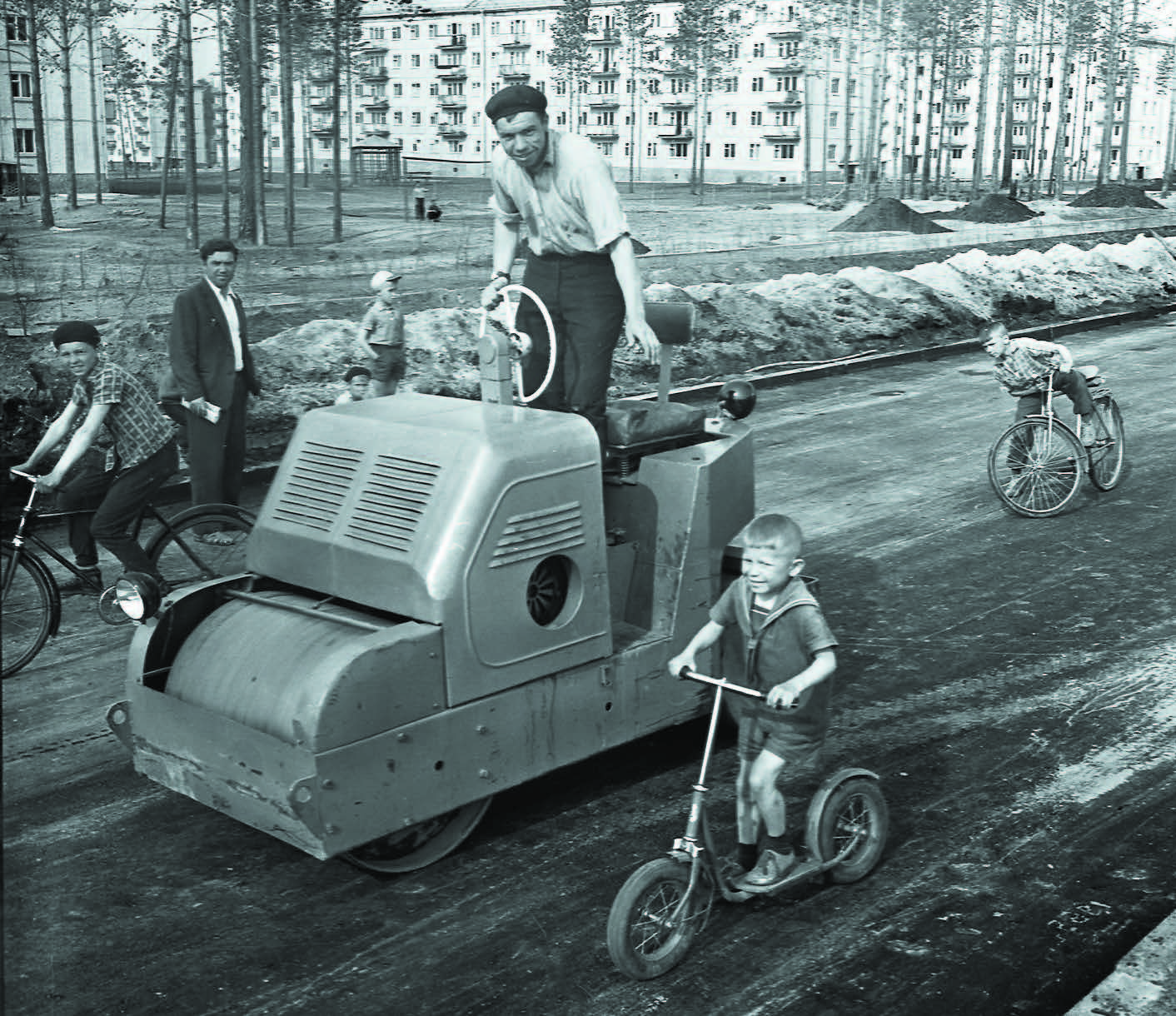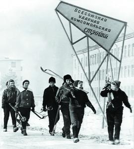 Символы времени – бетон, металл, нефть, уголь, электроток. В космосе – советская женщина Валентина Терешкова утверждает первенство СССР в области научно-технического прогресса.