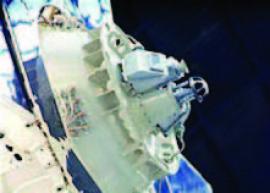 В сентябре он перекинут с помощью искусственного спутника Земли «Молния-1». Построенная в тайге неподалеку от будущего центра Братска станция телевизионной космической связи «Орбита» начала принимать через спутник пробную передачу Центрального телевидения СССР. Первая телепередача через космос прошла успешно.