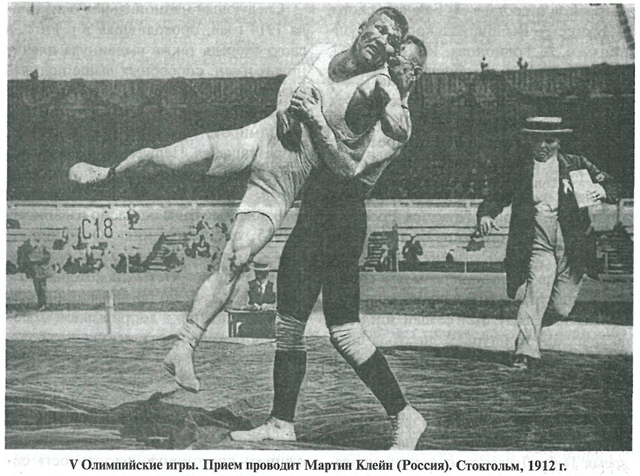 Драматично сложились соревнования по греко-римской борьбе для российского полутяжеловеса Мартина Клейна. Он уверенно прошел в полуфинал, где встретился с финном А. Асикайненом. Согласно действовавшим в то время международным правилам, время полуфинальных и финальных схваток не ограничивалось. Оба борца продемонстрировали неиссякаемое упорство и волю. После более чем десятичасового поединка победу одержал Клейн, который в финале должен был выступать утром на следующий день против шведа Иохансона. Последний, благодаря землякам-распорядителям, имел более слабых соперников и без особого труда стал финалистом. Просьба официального представителя российской команды генерала Воейкова дать возможность отдохнуть российскому спортсмену была проигнорирована. Отказ мотивировали тем, что соревнования борцов предполагалось закончить до церемонии награждения победителей, которая планировалась на том же стадионе, где состязались борцы. Естественно, М. Клейн не смог проводить финальную встречу и довольствовался лишь серебряной медалью.